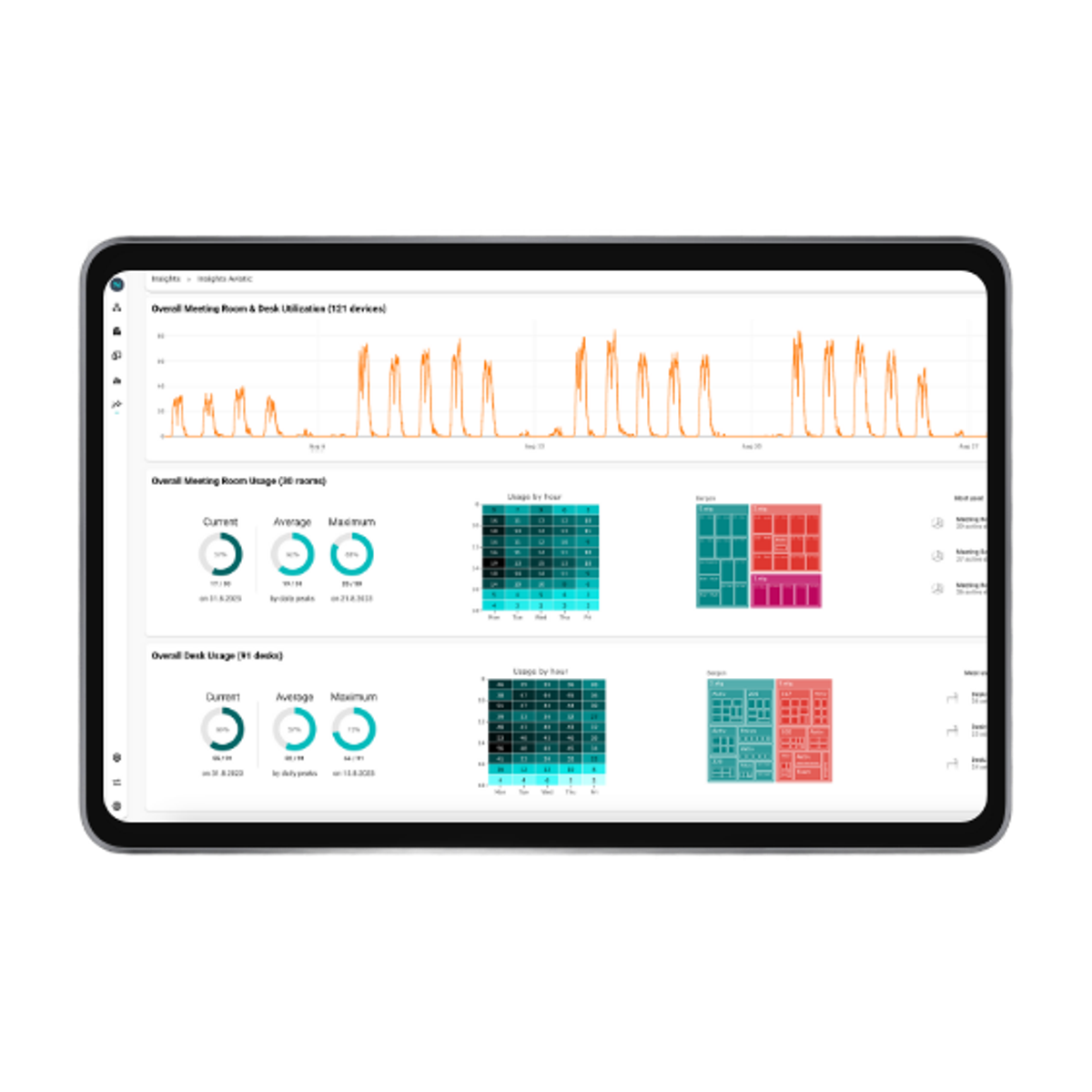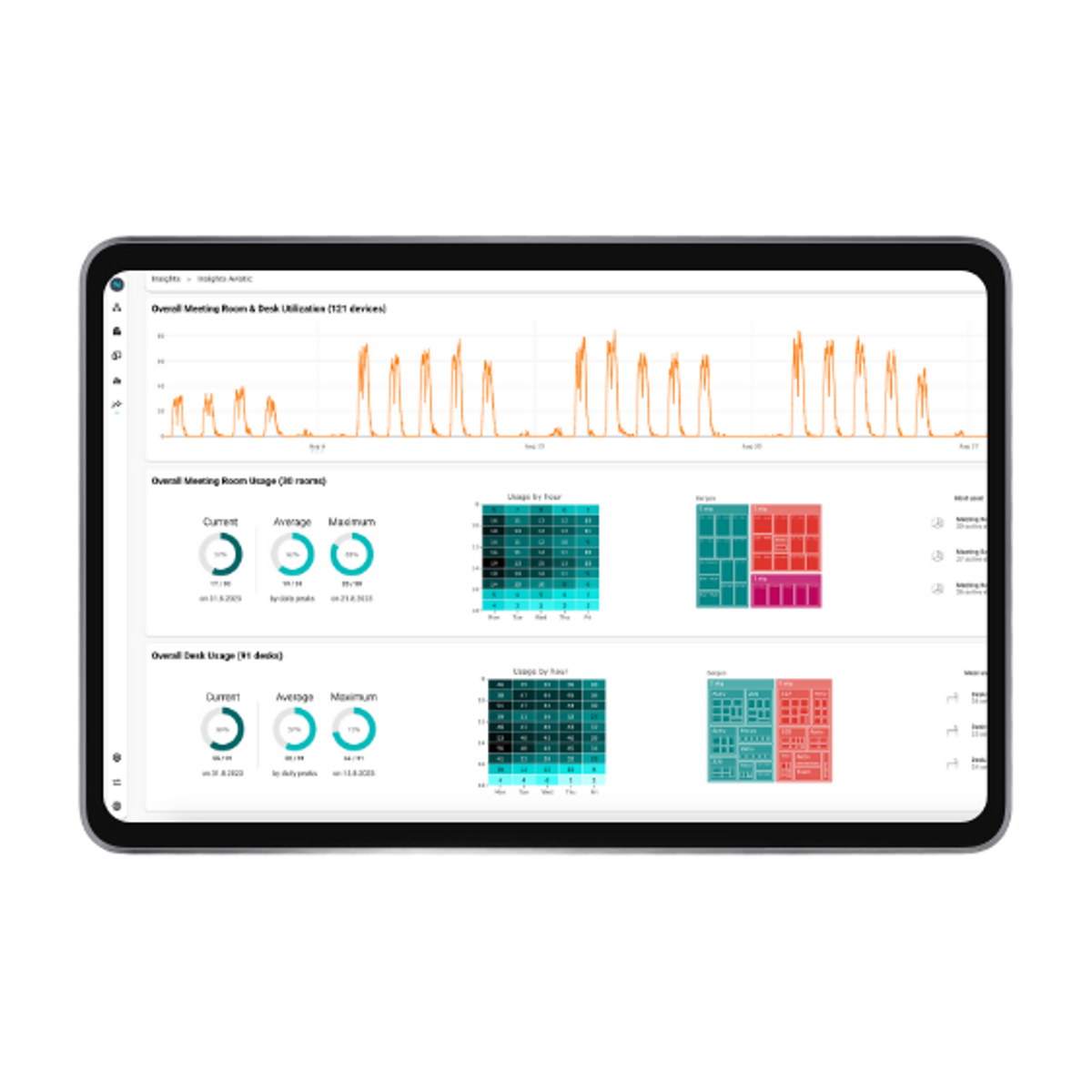 Which floor is most popular? What type of meeting rooms are used the most? What areas are most populated? Get your insights now! Power BI integrated.