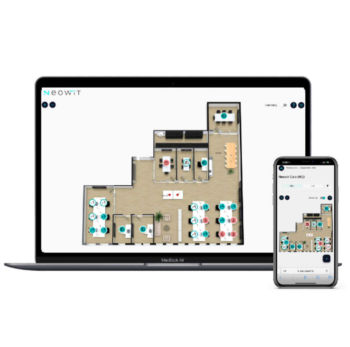 Users can from any mobile device or PC see a live view of their office space!